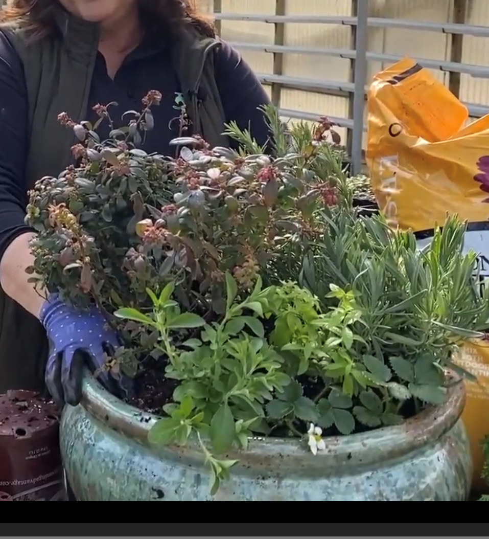 Plant a container garden of herbs mixed with fruits for ingredients to make flavorful, healthy smoothies!