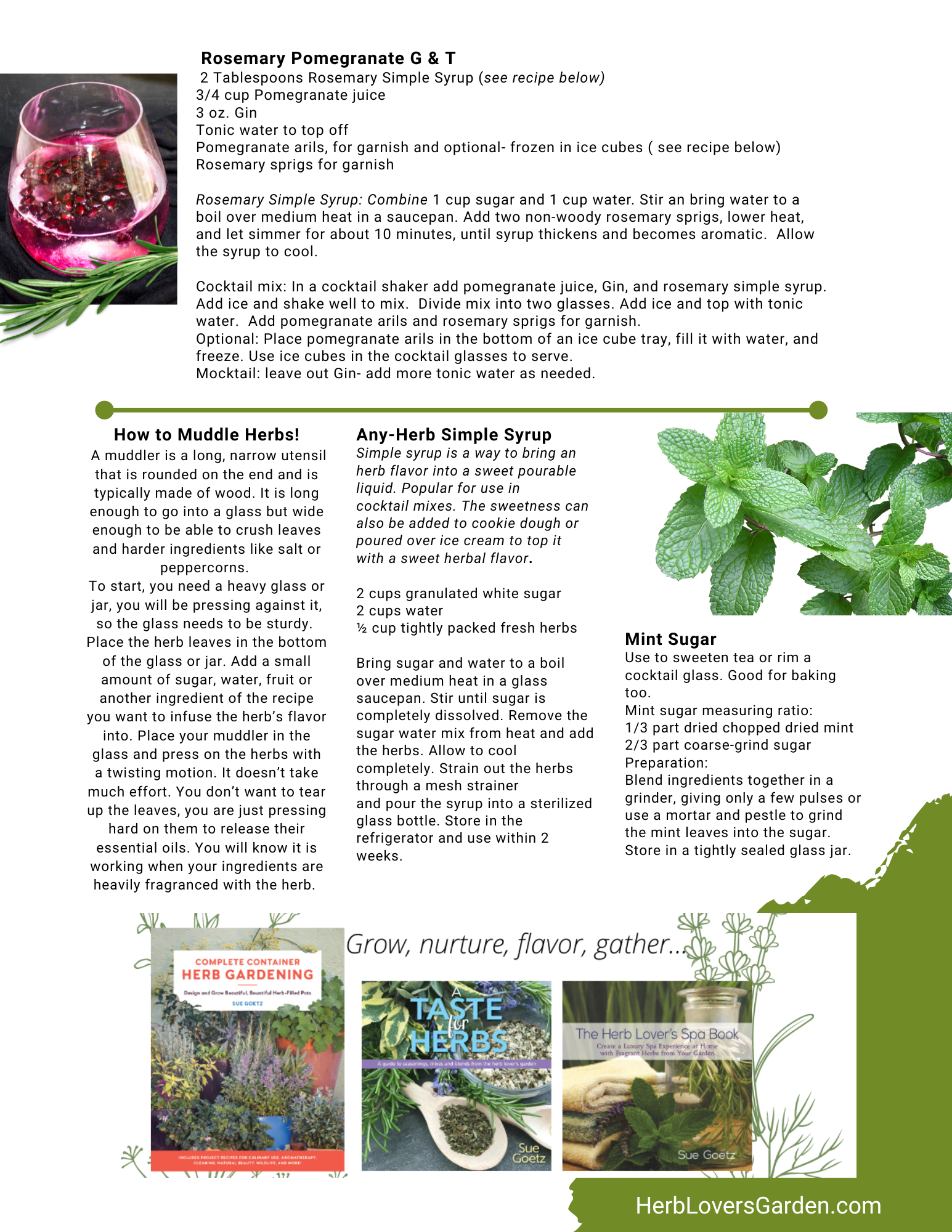 More beverage recipes in A Taste for Herbs including Herb Infused Wines, Rose Petal Brandy, Mint Bourbon and more!