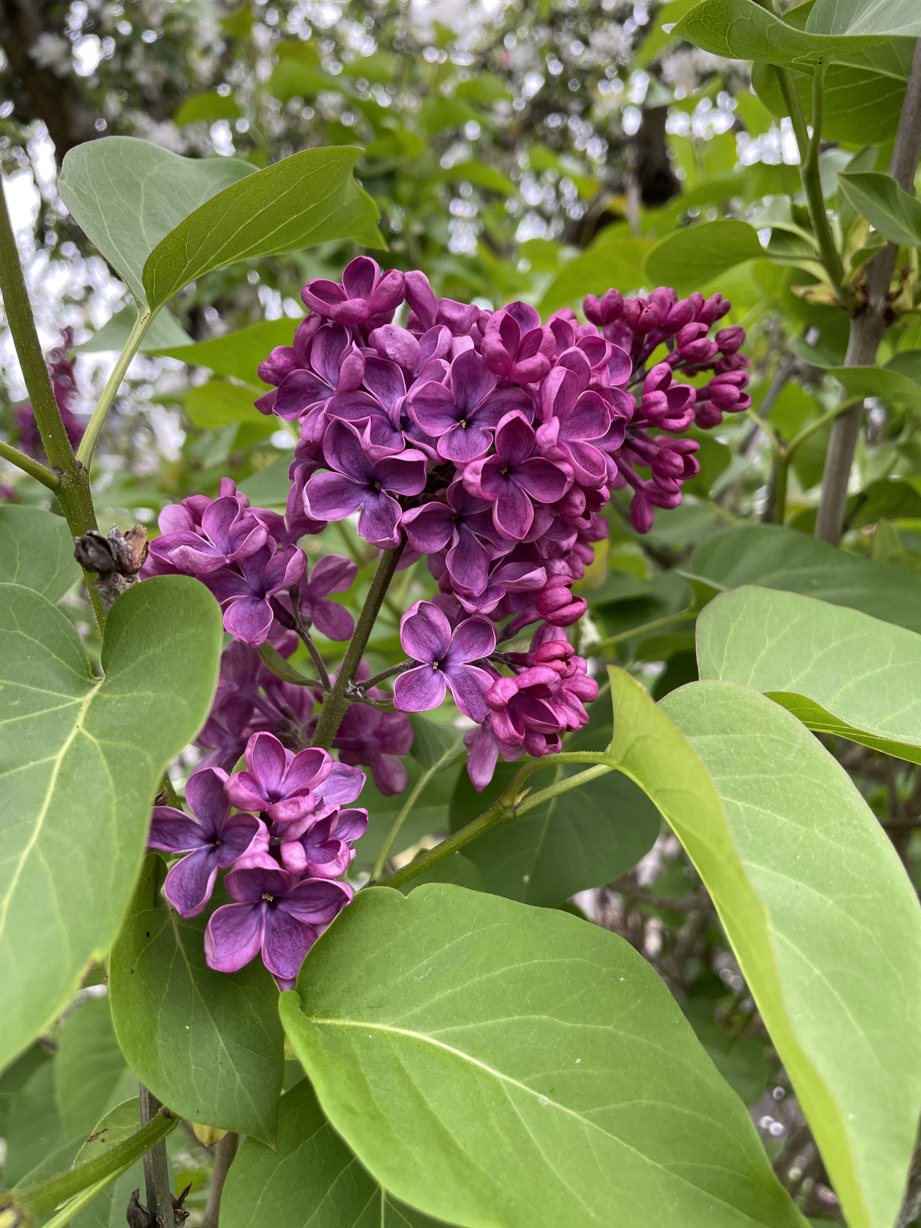 ‘Tis the season! I walked out my home office door and was greeted by a sweet perfume. The familiar aroma of blossoms on the old, large lilac bush, now as large as a tree. It is heavily laden with flower clusters, the branches arching down from the weight. The heat of the day releases fragrance all around.